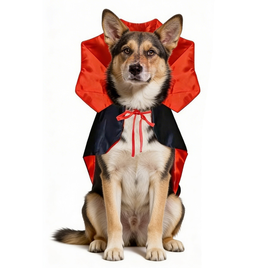 גלימת ערפד לכלב. הגלימה מתלבשת עם שרוך על הצוואר וישנם גומיות שניתן להלביש על הרגליים הקדמיות על מנת שהגלימה תהיה יציבה על הגוף.
